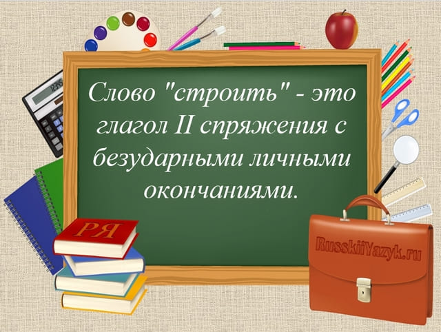 Понаблюдаем, как правильно изменяется по лицам и числам глагол «строить» с безударными окончаниями в формах настоящего времени: