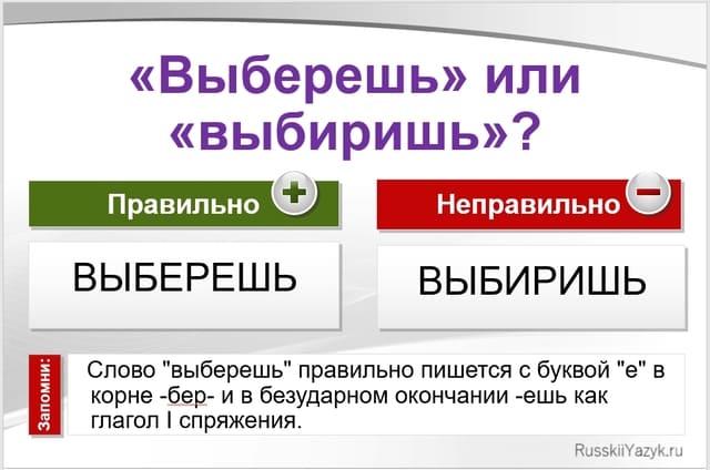 - 2 лицо ты вы́берешь — вы вы́берете;