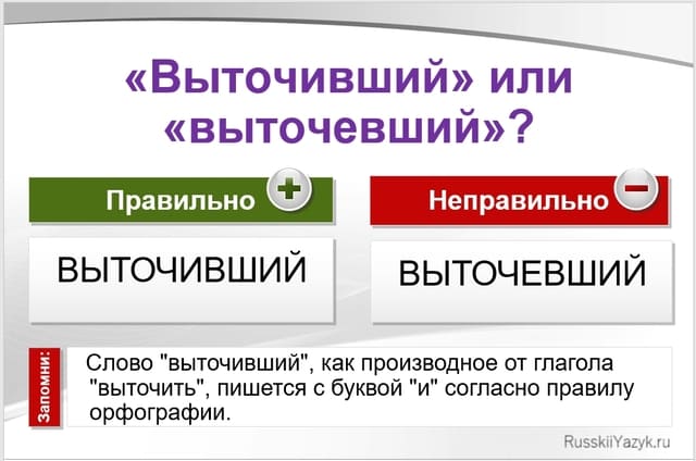 Узнаем, как правильно «выточивший» или «выточевший», определив часть речи и способ образования. Выясним морфемный состав слова и применим правило орфографии.